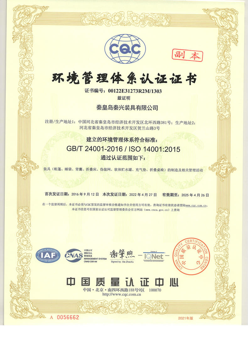 秦皇島秦興裝具有限公司有限公司源于我國第3524工廠,創建于2005年,占地面積30畝,是一家致力于研究,發展,制造和銷售為一體的綜合性裝具及紡織服裝加工生產企業,我們的主要產品有單、棉帳篷,民用帳篷,旅游帳篷集各種機工產品等。